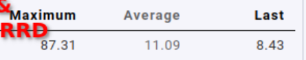 Please use the average calculation, not the maximum calculation in the RRDs by clicking on average here