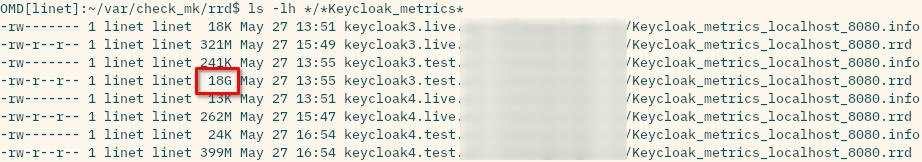 2024-05-27 16:34:07 [6] [main] [RRD helper 2787746] creating new RRD file for service "keycloak4.test.…cut…;Keycloak metrics localhost:8080", command: cmc_single;keycloak4.test.…cut…;Keycloak metrics localhost>