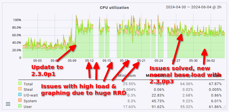 Now we’ll have to wait & see if that also improves the general load on the system as well as the intermittent outages in graph creation.