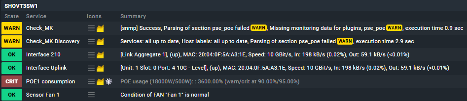 HostKey(hostname='SHOVT3SW1', source_type=<SourceType.HOST: 1>) -> Add sections: ['dell_om_disks', 'dell_om_esmlog', 'dell_om_fans', 'dell_om_mem', 'dell_om_power', 'dell_om_processors', 'dell_om_sensors', 'dell_powerconnect_cpu', 'dell_powerconnect_fans', 'dell_powerconnect_psu', 'dell_powerconnect_temp', 'if', 'if64', 'inv_if', 'pse_poe', 'snmp_extended_info', 'snmp_info', 'snmp_uptime', 'ucd_cpu_load', 'ucd_cpu_util', 'ucd_disk', 'ucd_diskio', 'ucd_mem', 'ucd_processes']