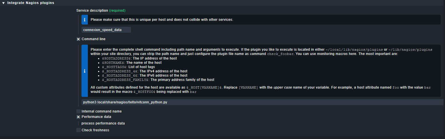 i’m using a python code with nagios plugin but in my service i dont have any metrics so i cant build graphs, i’m also trying to use my python code on each devices but when i use the $HOSTADDRESS$ i have an error, even with nagios documentation it’s really hard to see how to solve my problem.