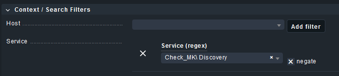 The second (main) dashboard however, doesn’t work as I would like. Sure, using the filter option in the top bar of the dashboard, it’s possible to apply a filter that negates Software Updates. This is exactly what I need. However, this filter settings are not part of the dashboard configuration, so the filter is not persistent. In the element setup within the dashboard layout, I cannot find any option the negate a certain service.