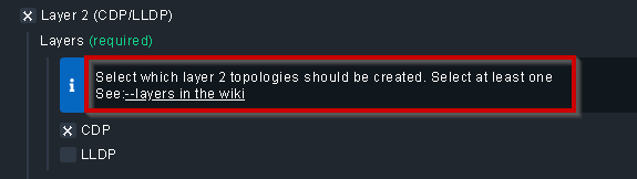 play around a bit with the topologies (CDP/LLDP/L3v4/L3v6) you want to create, especially if you use the “merge” option.
