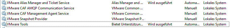 Wie schon erwĂ€hnt wurden bei uns die VC wohl durch das VMware Team neu gestartet und daher kommt vielleicht der Status. Nach einem Neustart der âVMware Toolsâ (hier startet auch kurz der Snapshot Provider Dienst) oder Neustart von der VM ist der Status wieder GrĂŒn. Eine Benachrichtigung haben wir an den Services aber auch deaktiviert.