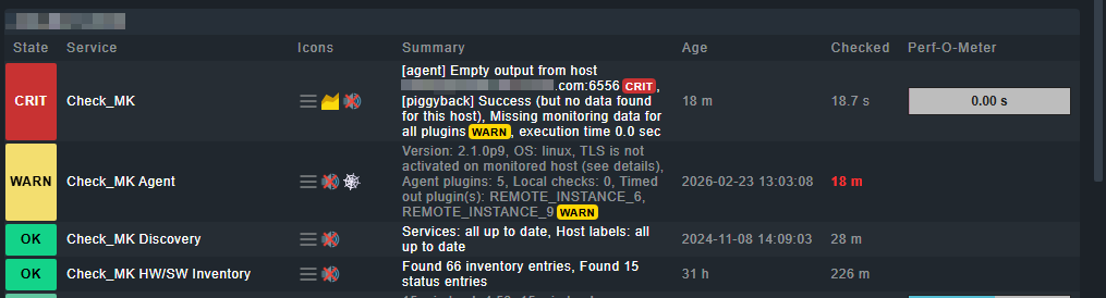 The CheckMK agent on the server where it is configured disconnects and throws a timeout message.