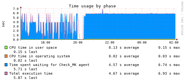 The last graph shows check_mk service timeouts. (6 seconds is the normal timeout there)