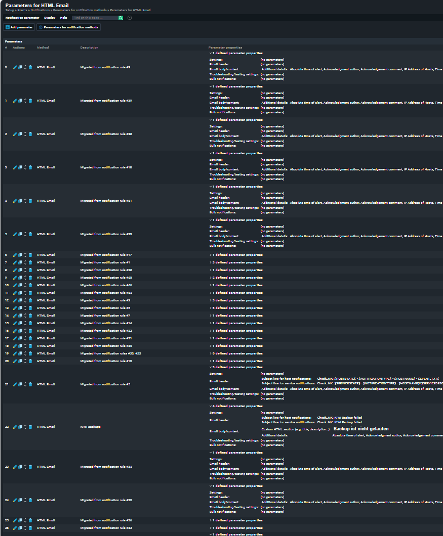 - Wie räume ich das “schlau” wieder auf? Denn die 45 HTML-Email-Parameter sind ja mit den Notification-Rules “verlinkt”
