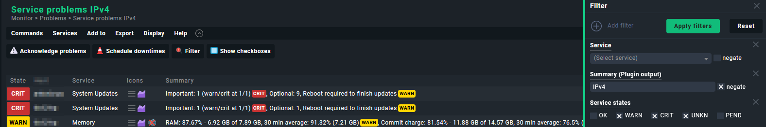 However, when I negate that filter to see other issues, the title doesn’t reflect that, so it doesn’t say: Service problems NOT IPv4, which I kind of hoped.