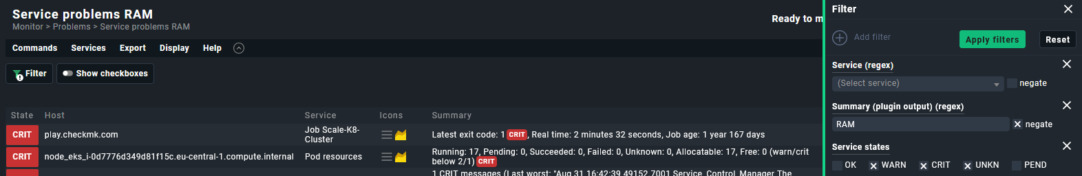 It’s a filter on the builtin view svcproblems, and according to Customize > Views it’s not customized.