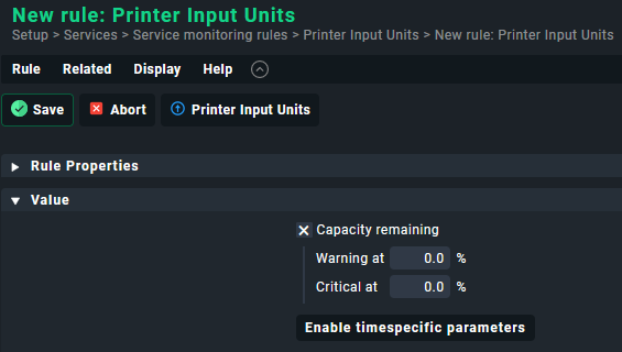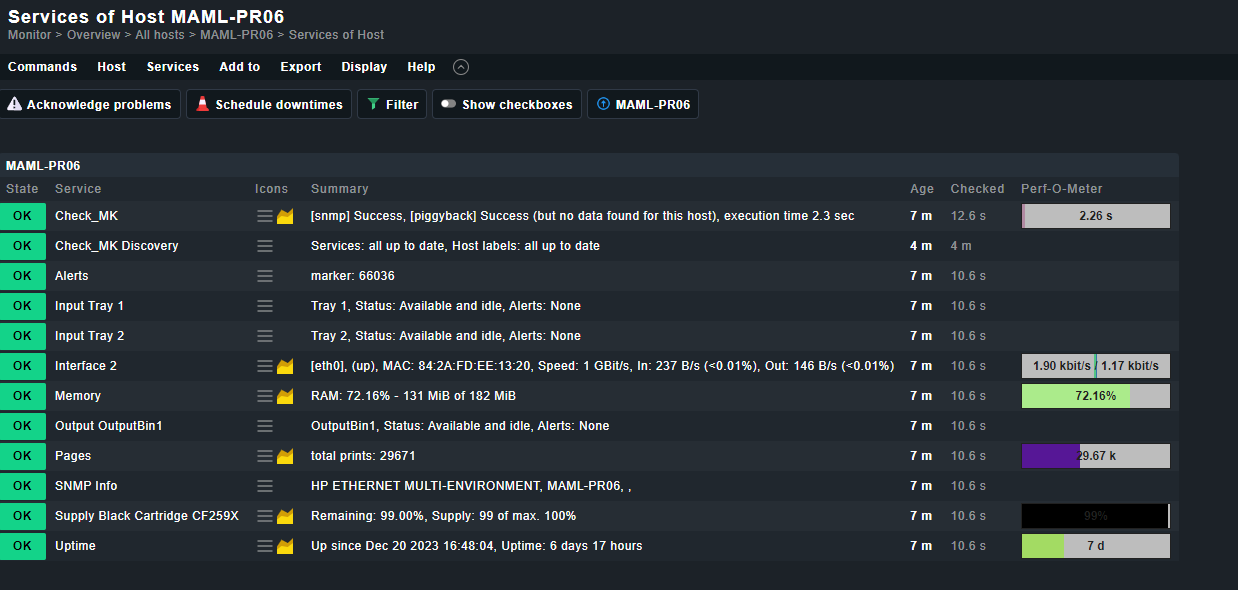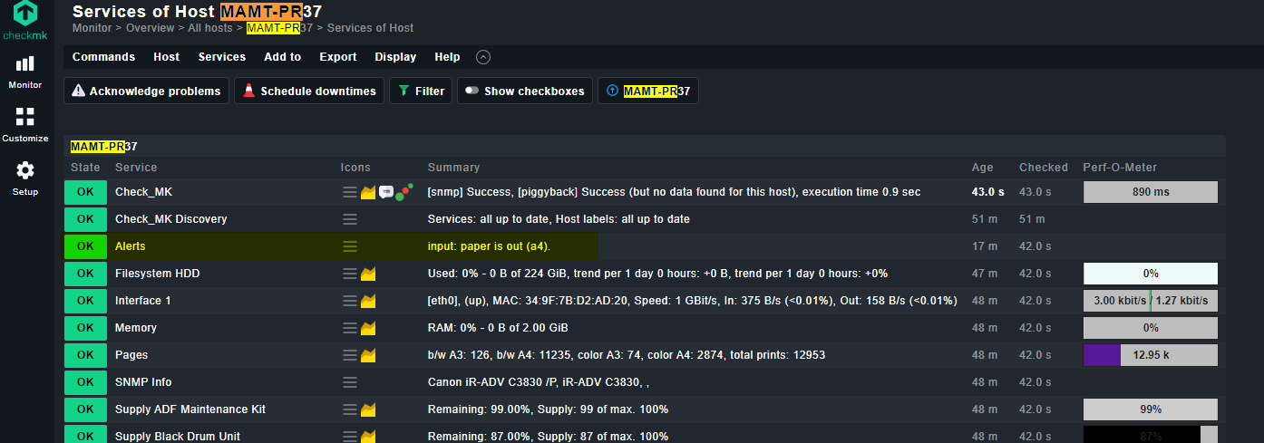 I would like to have a notification sent to me if a service is still in OK status on a printer, but the output is “input: paper is out (a4).”. has.