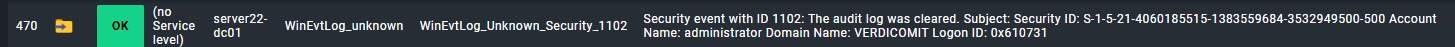 .{3} [0-9]+ [0-9:]{8} ..1102 \S+ The audit log was cleared. Subject: Security ID: \S* Account Name: (\S+) Account Domain: \S+ Logon ID: \S+