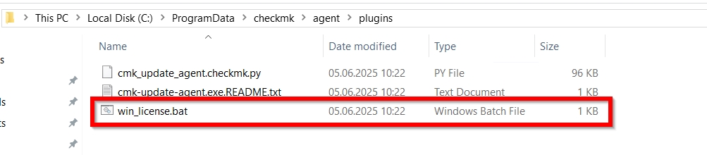 2025-06-11 11:16:49.639 [srv 4212] [Warn ] Process ‘C:\ProgramData\checkmk\agent\plugins\win_license.bat’ has no data