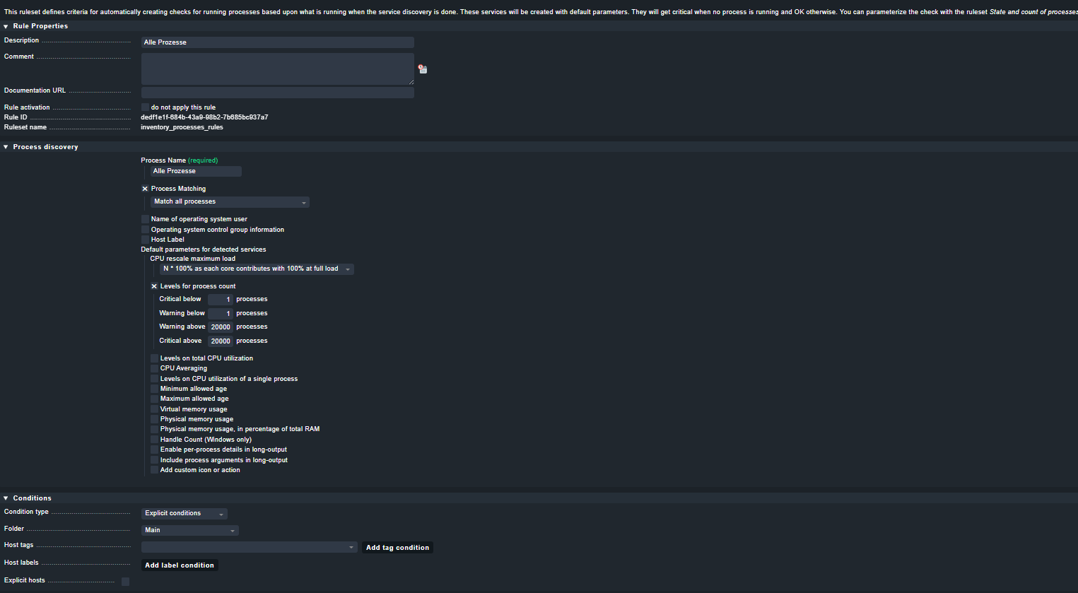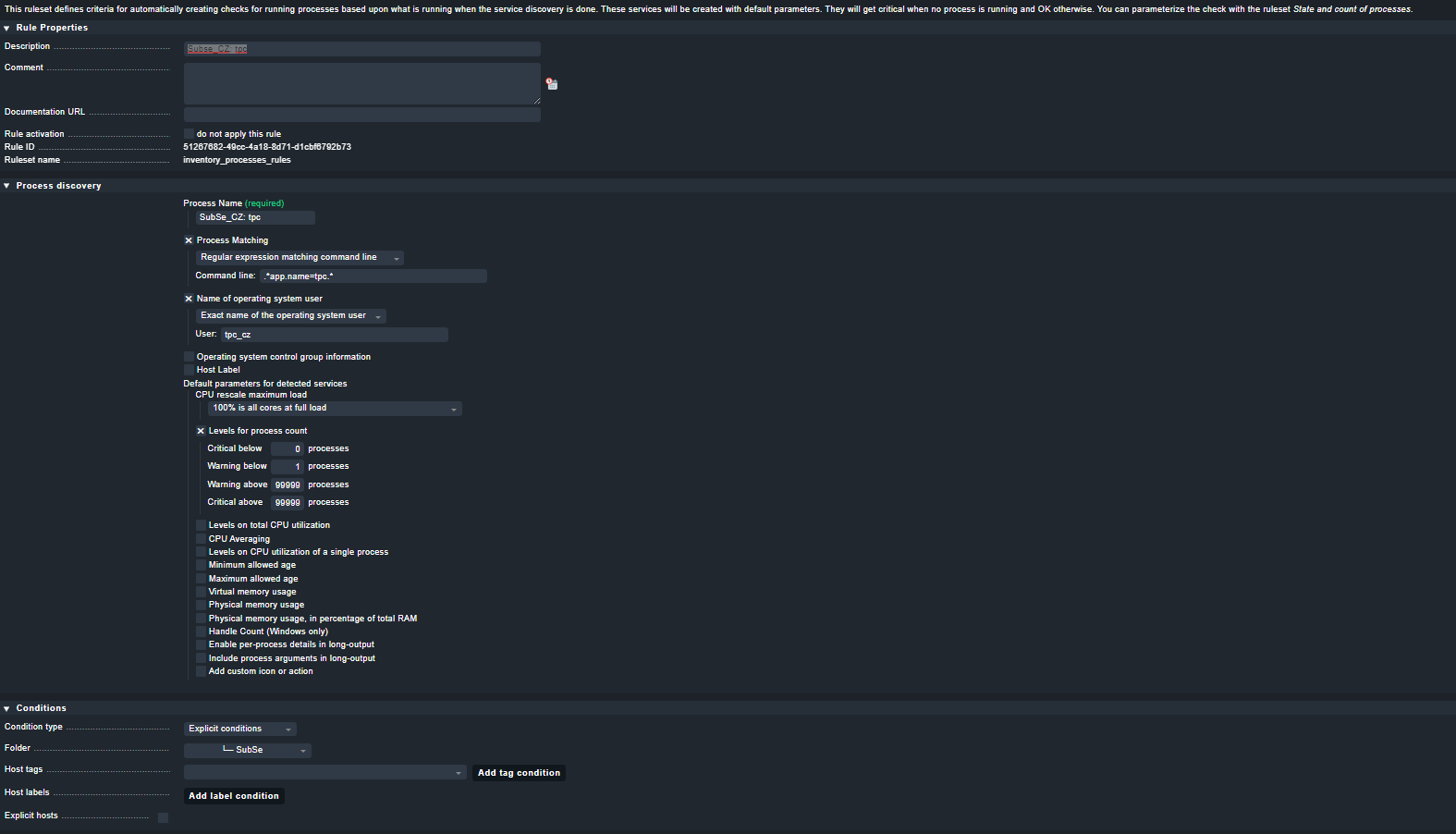 we have some process discovery rules on our systems, at the moment they alert us when process is not running with CRIT alarm. We’d like to change it to only generate WARN alarm if the process is not running, we don’t need CRIT alarm. For this reason we’ve configured the CRIT threshold below 0, but even then we receive CRIT alarm instead of WARN.