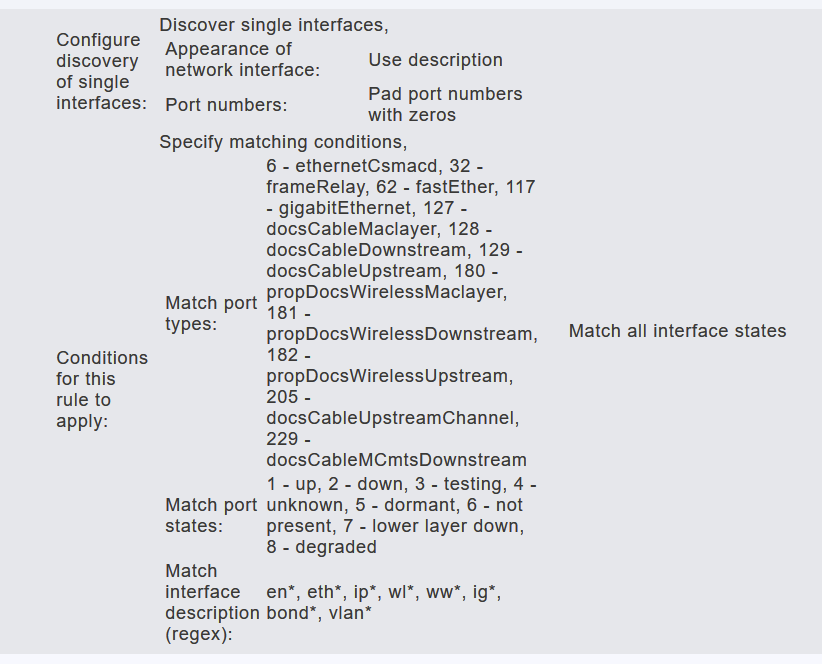 I probably have something wrong with my config for “Network interface and switch port discovery“, maybe you can find the error. This is the only enabled rule for discovery.
