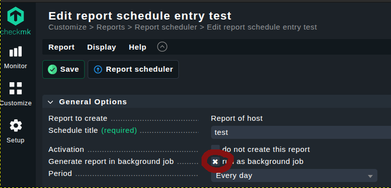 If that’s the case , this might be related to Werk #18074: Render all scheduled reports without error .