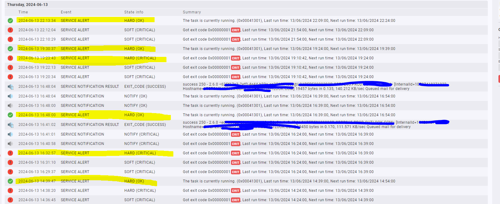 I went into one of the services with a high number of alerts over the last 5 days and all the states of it show SOFT. Example below: