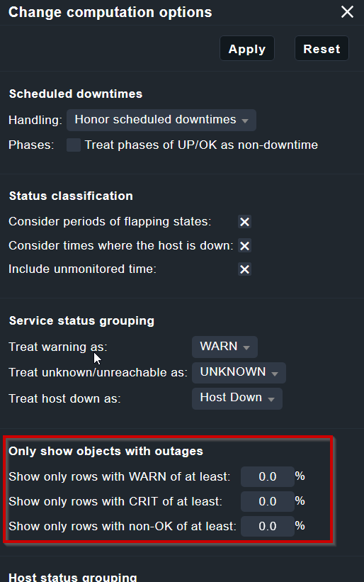 You can always use “Add page element” and then add a single line of text, where you can manually list/explain the service period being followed. I guess this would hit a limit if you want to have a report over hosts/services with different service periods though ![]()