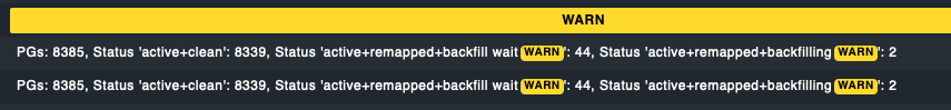 {"stats":{"total_bytes":11042323169280,"total_avail_bytes":5122803105792,"total_used_bytes":5919520063488,"total_used_raw_bytes":5919520063488,"total_used_raw_ratio":0.53607559204101562,"num_osds":23,"num_per_pool_osds":23,"num_per_pool_omap_osds":23},"stats_by_class":{"ssd":{"total_bytes":11042323169280,"total_avail_bytes":5122803105792,"total_used_bytes":5919520063488,"total_used_raw_bytes":5919520063488,"total_used_raw_ratio":0.53607559204101562}},"pools":[{"name":".mgr","id":1,"stats":{"stored":189858544,"stored_data":189858544,"stored_omap":0,"objects":46,"kb_used":556236,"bytes_used":569585664,"data_bytes_used":569585664,"omap_bytes_used":0,"percent_used":0.00014548329636454582,"max_avail":1304852561920,"quota_objects":0,"quota_bytes":0,"dirty":0,"rd":87012,"rd_bytes":223686656,"wr":177897,"wr_bytes":4241326080,"compress_bytes_used":0,"compress_under_bytes":0,"stored_raw":569575616,"avail_raw":3914557726651}},{"name":"pveclus1-ceph","id":4,"stats":{"stored":2036728219124,"stored_data":2036727939072,"stored_omap":280052,"objects":501278,"kb_used":5968735709,"bytes_used":6111985365468,"data_bytes_used":6111984525312,"omap_bytes_used":840156,"percent_used":0.60958051681518555,"max_avail":1304852561920,"quota_objects":0,"quota_bytes":0,"dirty":0,"rd":13812319885,"rd_bytes":697578409407488,"wr":27691420285,"wr_bytes":478009717050368,"compress_bytes_used":0,"compress_under_bytes":0,"stored_raw":6110184472576,"avail_raw":3914557726651}}]}