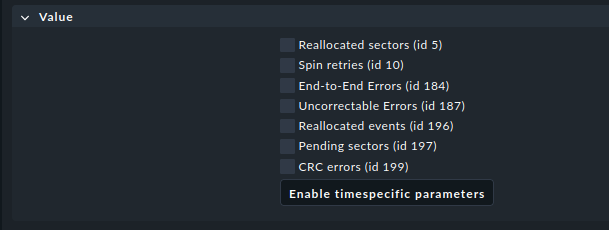 Also managed to find the rule set “SMART ATA (incompatible with legacy plug-in)”. But when adding a rule, I only see the following parameters:
