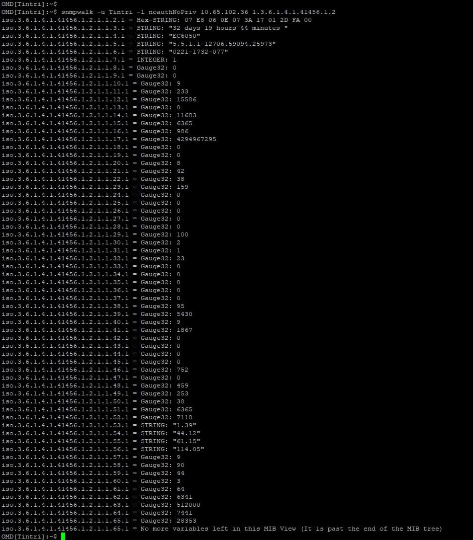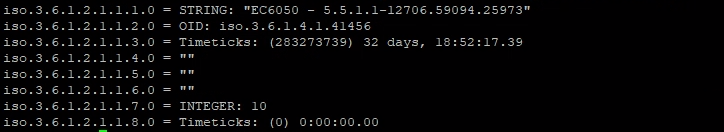 If I do the snmpwalk under the site account and specify a specific OID or the “global” OID to scan for I get a good output with all the MIB contents.