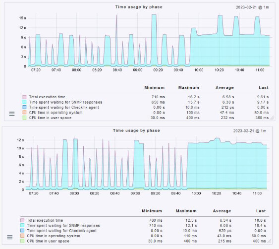 And here are two “Check_MK” service graphs of two of the other affected hosts. Note how the graph changes after the first “Remove all and new” on the beforementioned host: