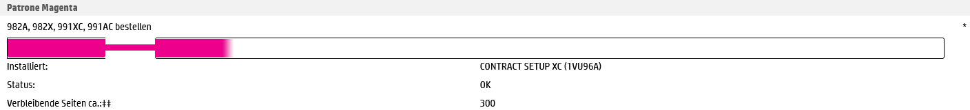 We have a HP E77660 which is added via SNMP. CMK discovered Supply Patrone Magenta HP CONTRACT SETUP XC (1VU96A) but its 0%. Other inks are correct. The WebUI states, that Meganta is not yet down to 0%. Is there any common thing that I miss?