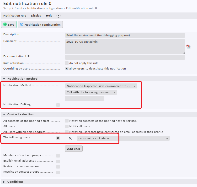 I tried running it on CLI as follows, and it works (created ticket), but when i tried using testing it from checkmk GUI via test notification, it doesnot works (not creating tikcet), what could be the reason? is this the bug in Checkmk, or i am missing something? Also, could anyone guide me how i can use and create my own env variables in my python script for this? i want to ceate a parameter “host_group” in checkmk and want to access it in my script!