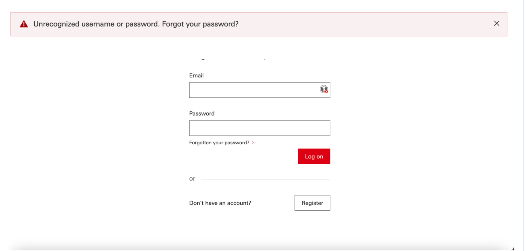 I use devops@mydomain.com:test@1234 to log in to https://develop.mydomain.com/user/login. It works without issue. If I use the wrong password it will report an Unrecognized username or password. Forgot your password? I am attaching the screenshot for your reference.