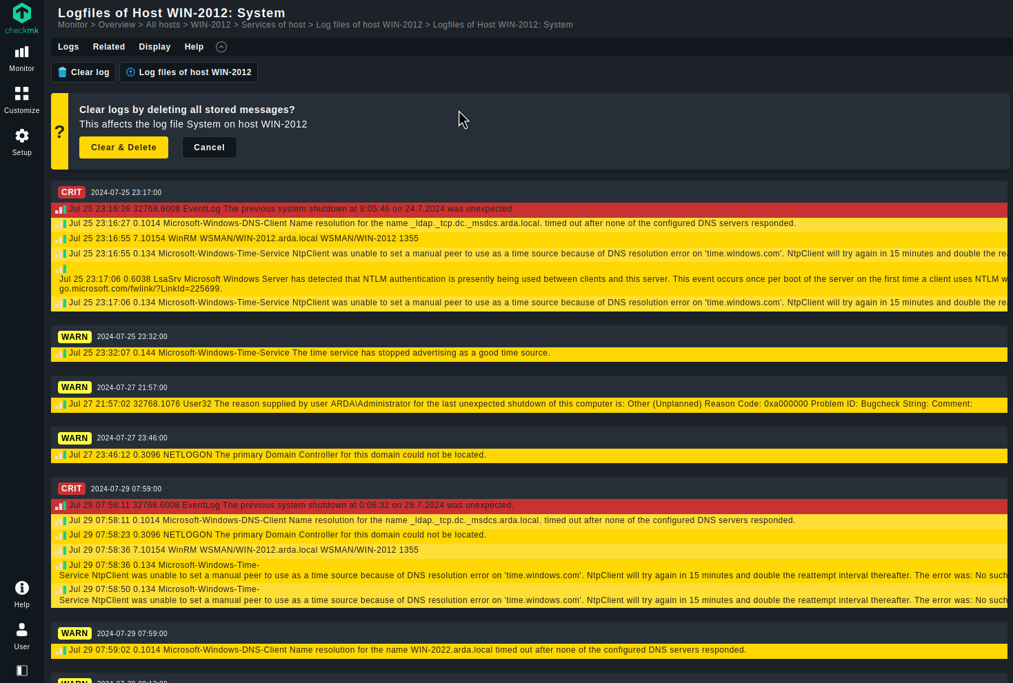 But it is kinda weird that I have to completely remove the logs to stop being yelled at for some error from 5 days ago. Sure logs stay on the machine itself if really need, but cmk should be kinda centralized logs place where one can go and check them out.