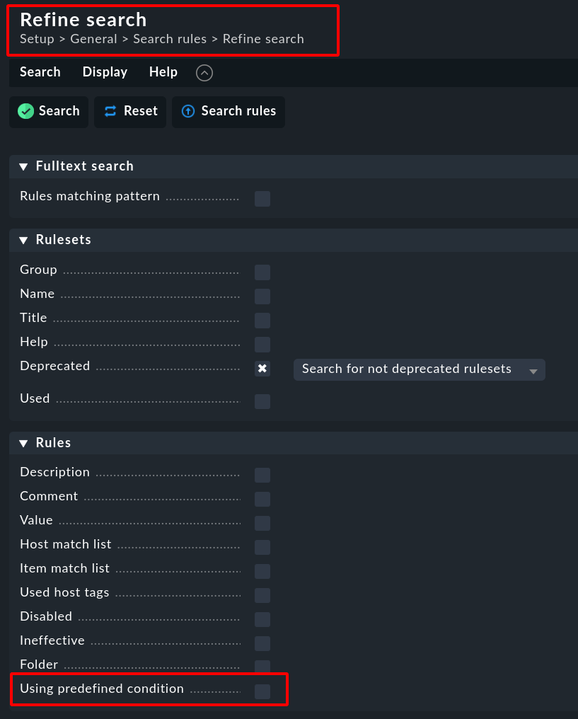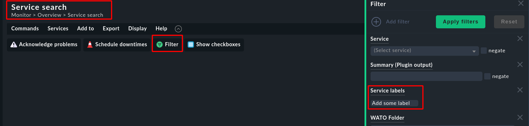 I tried using the “Service monitoring rules” screen and using the search function within this screen, but the full text search does not find labels.
