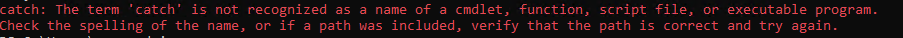 If your Powershell does not know a catch statement, then there is really something wrong with this machine.