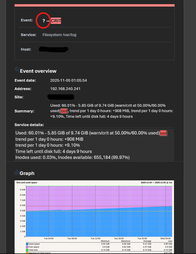 i have this problem on mutiple instances of checkmk running at the same version and config, and the problem appears for the same service check : filesystem /var/log