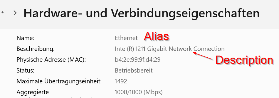Damit könnte ich ja arbeiten - nur wie bekomme ich hin dass CheckMK das so sieht? Bei Network interface discovery habe ich alle 3 probiert (Use index, use description, use alias) und nirgends kam “Ethernet - Hostname”.