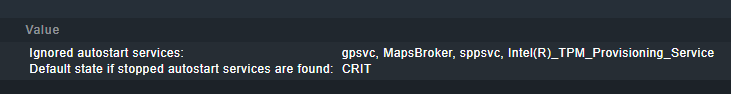 In a rule of Windwos Service Summary I want to ignore the autostart service: Intel(R)_TPM_Provisioning_Service. I can ignore other services, but it seems like cmk is not matching the input with the service. It is still on CRIT. I also tried TPM_Provisioning_Service and *_TPM_Provisioning_Service but none of these work.